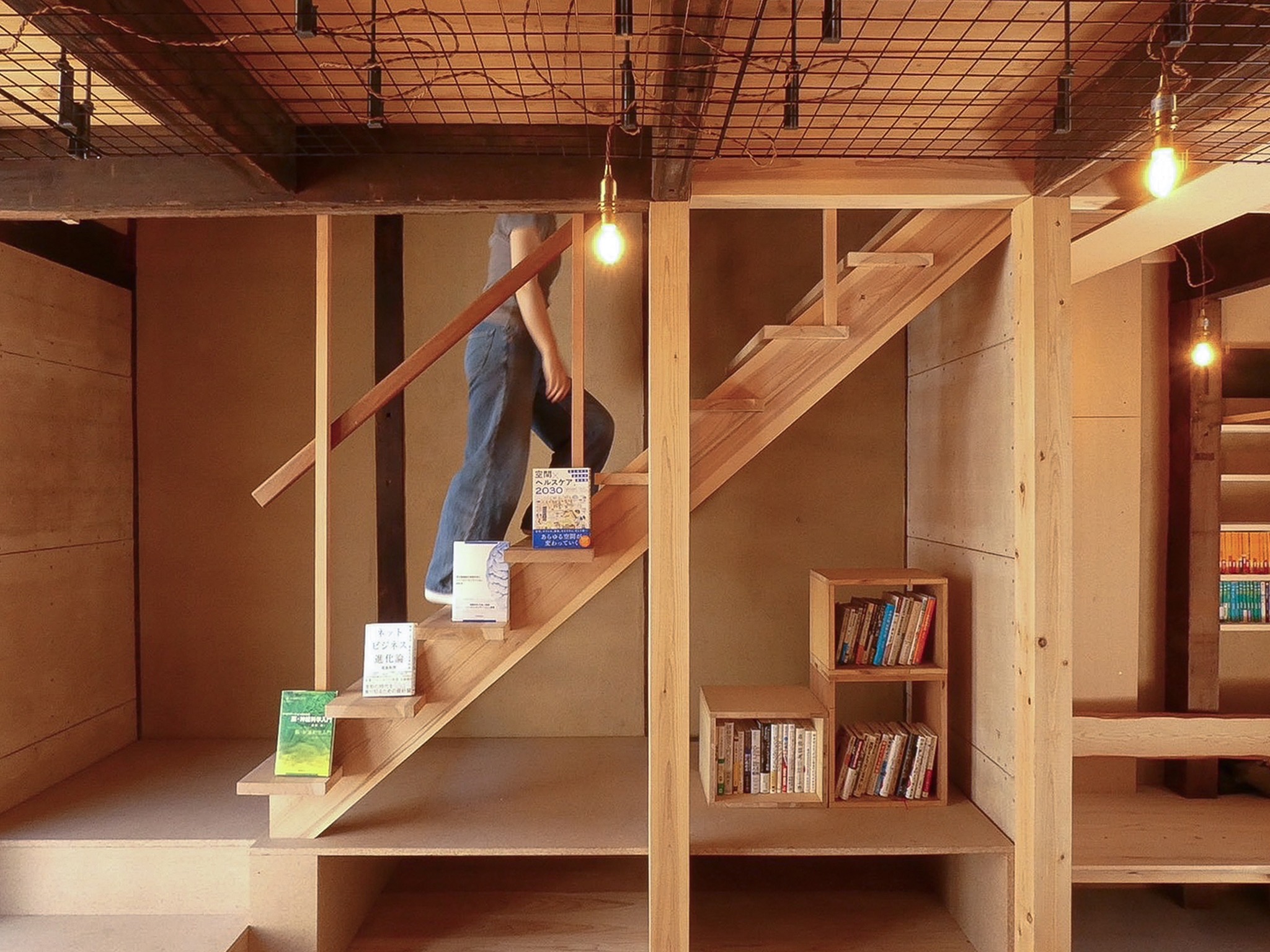 私たちのステーションは、古い長屋をリノベーションしたオフィス。壁一面を埋め尽くす本棚には、医療・看護の専門書からデザイン、哲学書まで並びます。